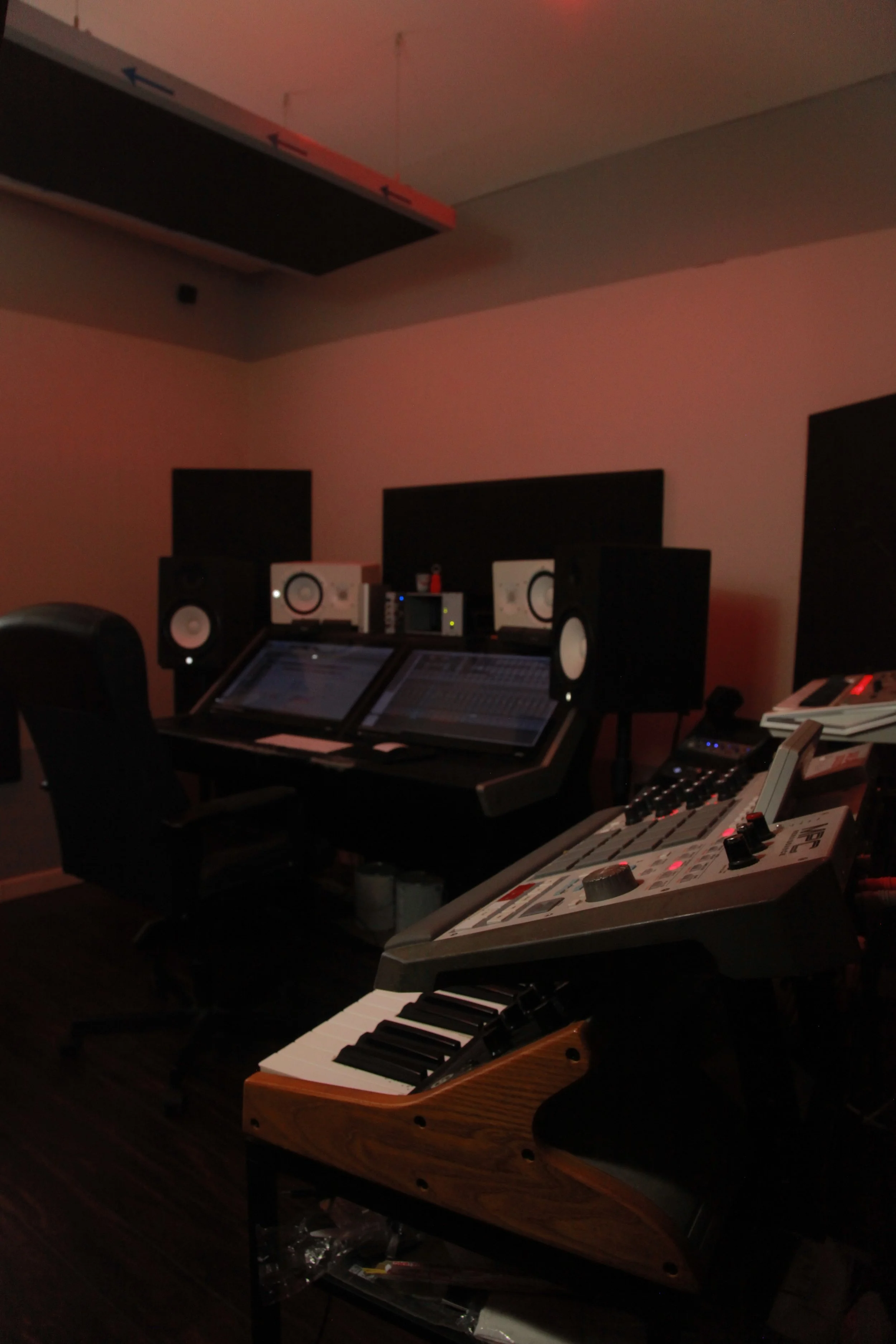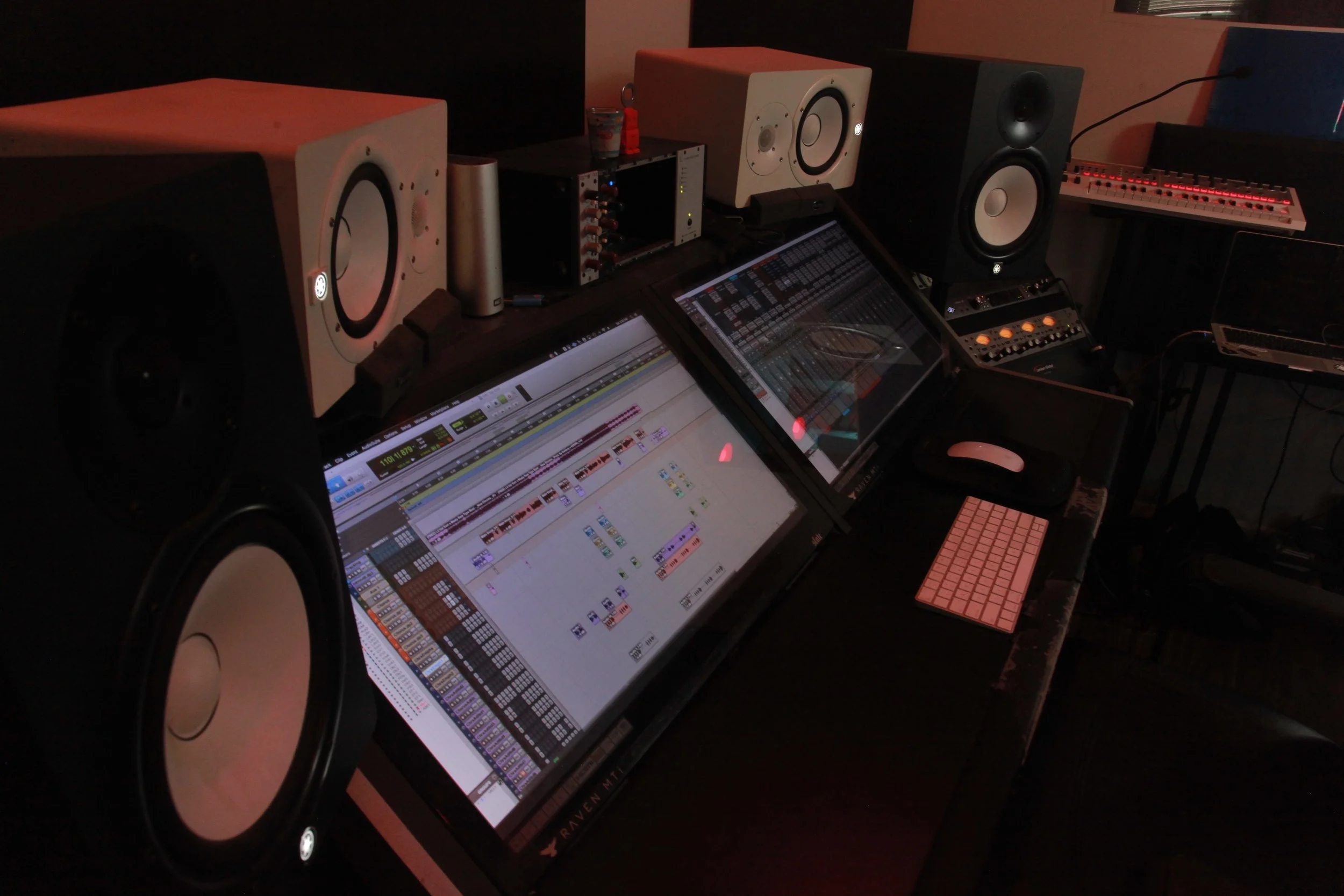 Our main recording room offers a dual-monitor Raven console with Neve 543 and 551 units for top-tier sound control. The control room is equipped with Yamaha HS8 monitors, an HS8S subwoofer, and HS7 speakers for precise mixing. The Trap Factory features a Sub37 Moog, MPC Renaissance, and more premium gear. Enjoy a creative vibe in the Raven Room, located in the Arts District, with Philips Hue lighting for perfect late-night sessions.